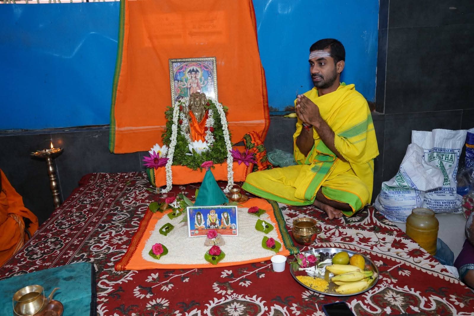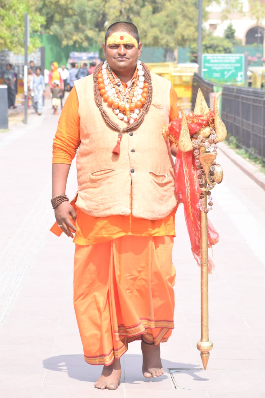 The entire Idol has been sculpted from a single marble like the linga of Mahadev and is 5 feet tall. The Idol faces the East and on the right side, one hand holds a japamala, the second a kamandalu (Pot with Holy water) and the third a damru (Hourglass shaped small drum). The first hand on the left side holds a trident, the second a conch and the third a yogadand. The head of the idol adorns a Shivapindi. The Idol is installed on a stone deck. On the opposite side of the temple, there is a temple of Mahadev along with Nandi.
