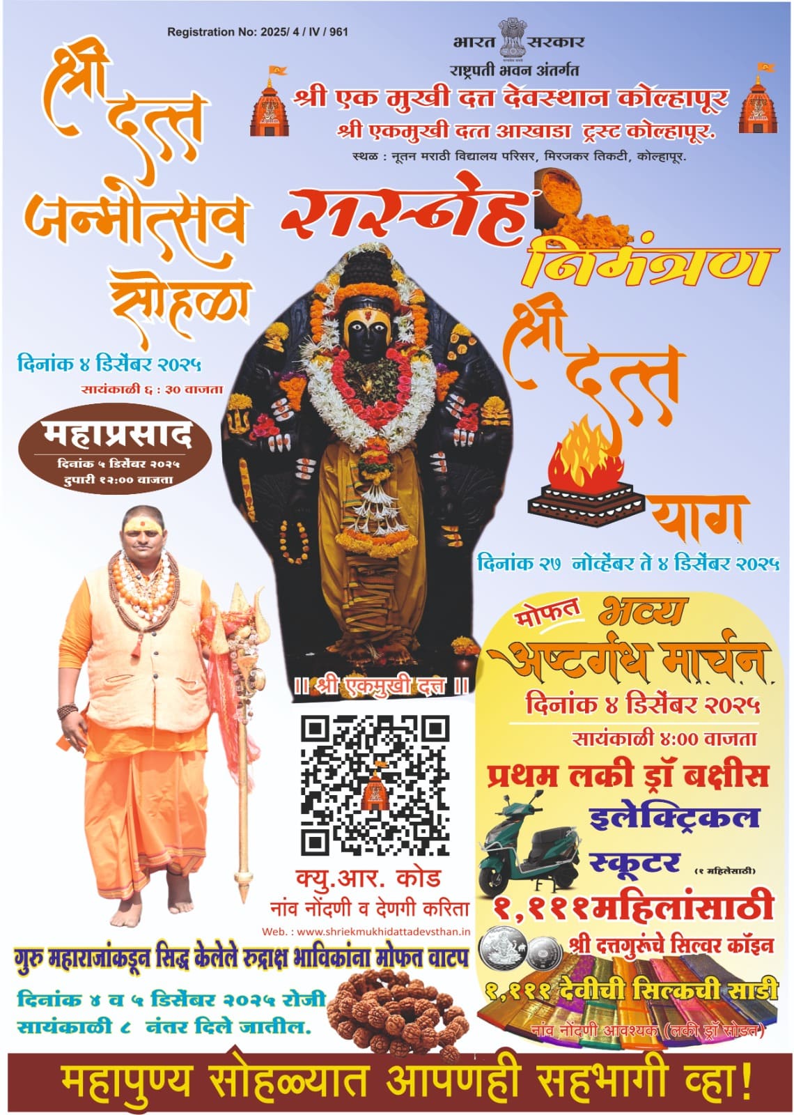 श्री एकमुखी दत्त जन्मोत्सव नवरात्र: 27-Nov-2025 to 04-Dec-2025